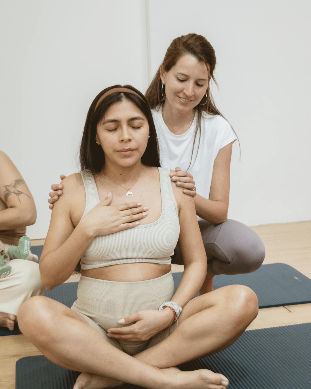 1 clase presencial a la semana de yoga prenatal, meditación e hipnoparto.